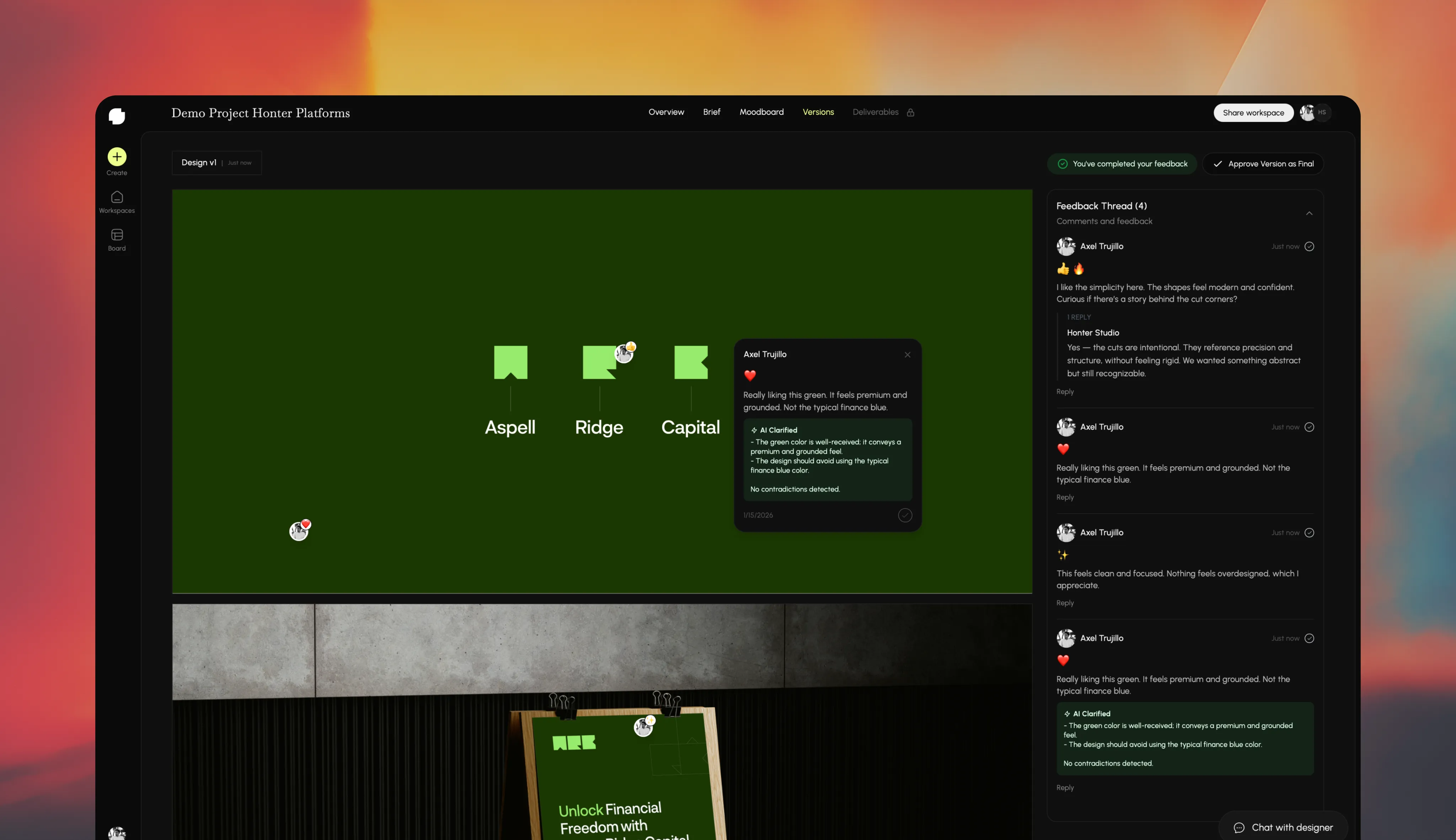 Design projects don’t fail because of creativity. They fail when feedback fragments, decisions lose context, and momentum disappears. Honter gives design work a clear system to move forward.